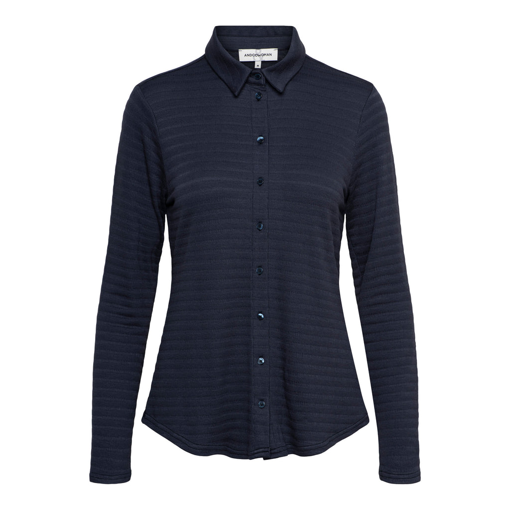 Deze blouse van &Co met lange mouwen is gemaakt in een zachte stretch viscose kwaliteit. De blouse heeft in de stof een structuur zitten. De blouse heeft een knoopsluiting en een staand kraagje. De blouse valt iets getailleerd en is een musthave voor in je kledingkast. De blouse hoeft niet gestreken te worden na het wassen!