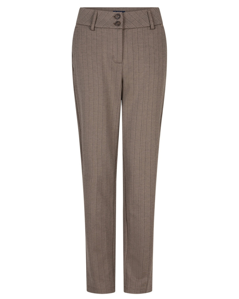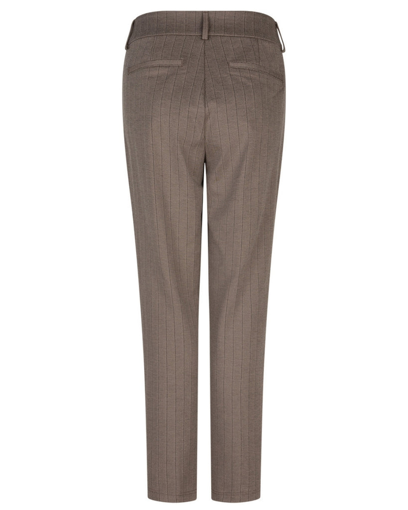 De Diana Punta Pinstripe is een punta broek met een regular fit en een krijtstreep. De broek is aansluitend op de heup en bovenbenen en heeft tapstoelopende pijpen. De Diana Punta Pinstripe heeft een dubbele knoopssluiting, steekzakken en paspelzakken aan de achterkant.