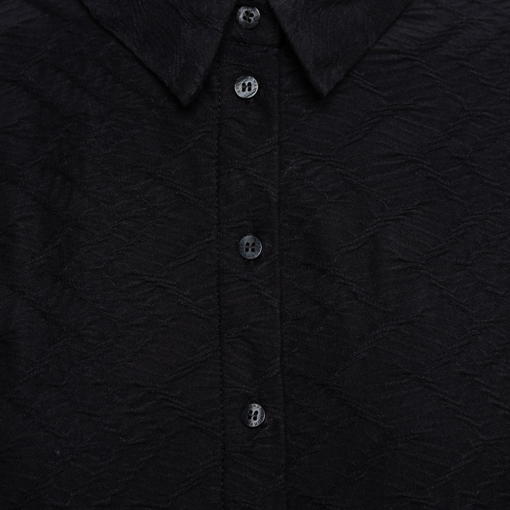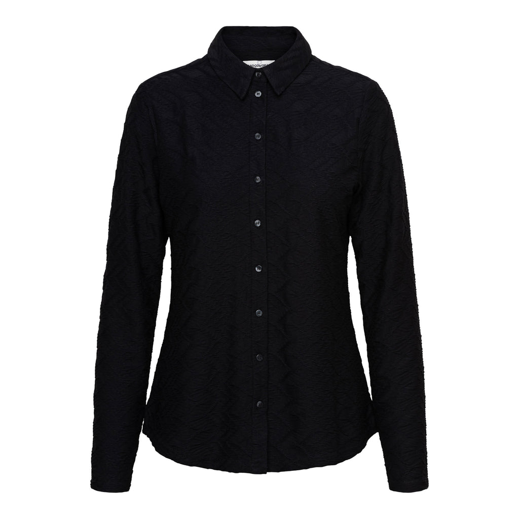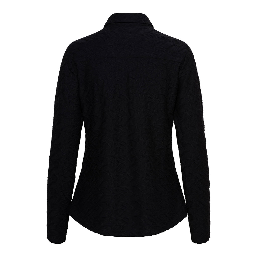 Deze blouse van &Co met lange mouwen is gemaakt in een zachte stretch viscose kwaliteit. De blouse heeft in de stof een structuur zitten. De blouse heeft een knoopsluiting en een staand kraagje. De blouse valt iets getailleerd en is een musthave voor in je kledingkast. De blouse hoeft niet gestreken te worden na het wassen!