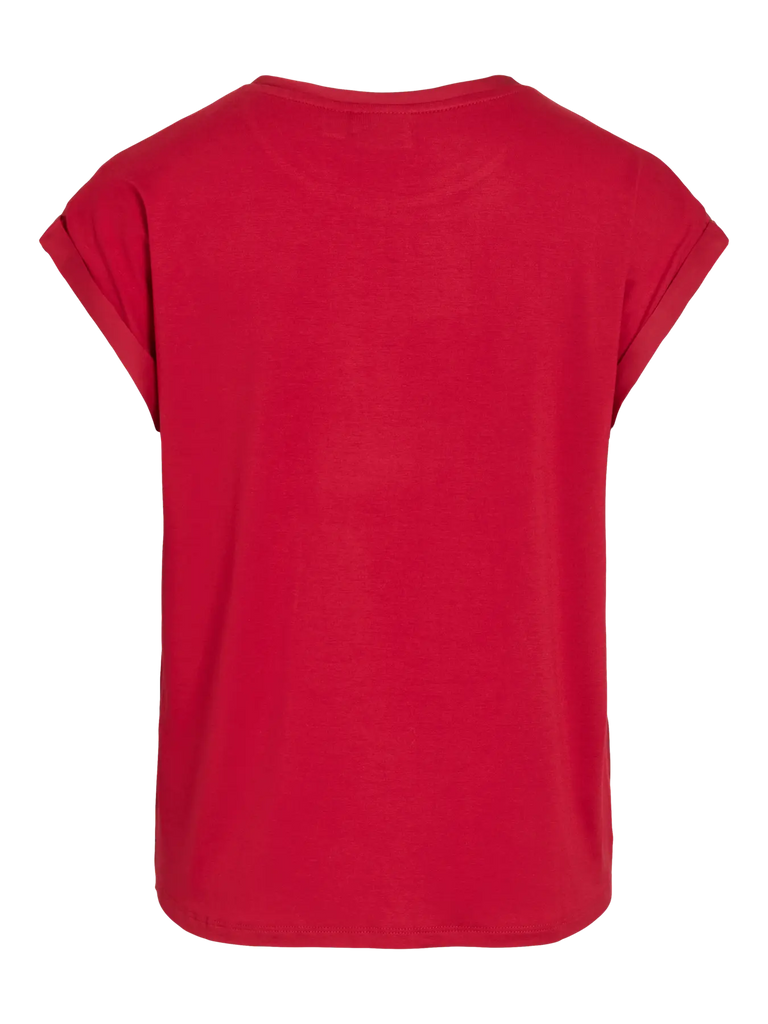 DETAILS Deze leuke top van Vila heeft een ronde hals en een korte overslag mouw. De top heeft aan de voorzijde een satijn look en is aan de achterzijde gemaakt van een t-shirt stof.