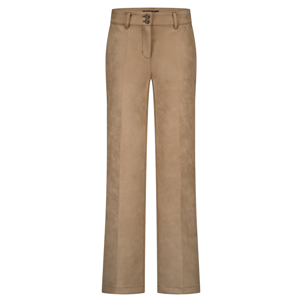DETAILS De Claudette Faux Suede is een wide leg broek met een dubbele knoopsluiting en een suede look. Deze broek is aansluitend op de heup en loopt vanaf de bovenbeen wijd uit. De Claudette Faux Suede heeft een comfortabele hoge taille, steekzakken en paspelzakken aan de achterkant. Deze broek kan gecombineerd worden met de bijpassende jas, de Jacket Faux Suede