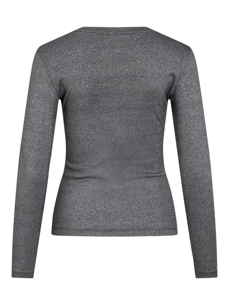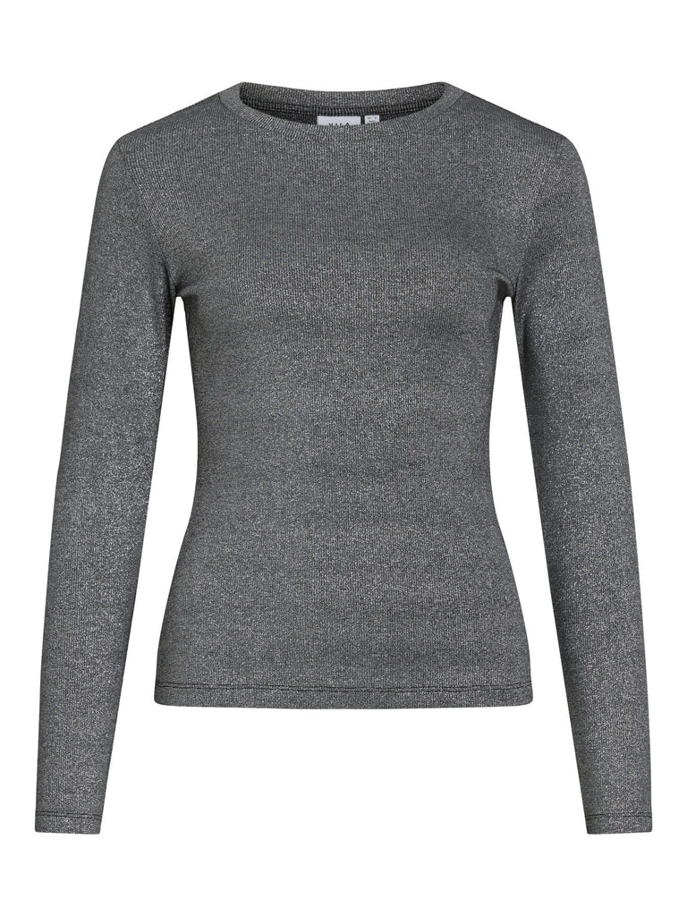 DETAILS De Vicatrea top van Vila is een echte eyecatcher die elke outfit net dat beetje extra geeft. De zachte, rekbare stof is voorzien van subtiele zilveren glitters, waardoor de top een stijlvolle en feestelijke uitstraling heeft. Dankzij de aangesloten pasvorm en de ronde hals is hij perfect te combineren met zowel een chique rok als een stoere jeans.